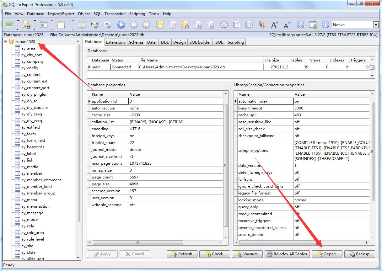 2:打開軟件,導(dǎo)入數(shù)據(jù)庫,選擇修復(fù) 按鈕Repair。