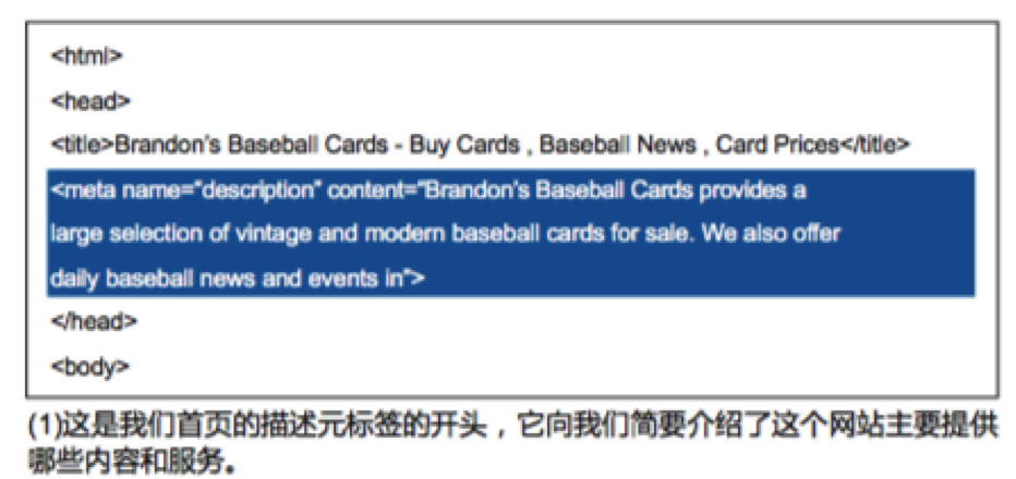 請注意避免 : 與網(wǎng)頁實際內(nèi)容不相符的描述元標簽; 過于寬泛的描述 , 比如“這是一個網(wǎng)頁”或“關于棒球卡的網(wǎng)頁”等 ;在描述部分堆砌關鍵詞 ;把網(wǎng)頁的所有內(nèi)容都復制到描述元標簽中